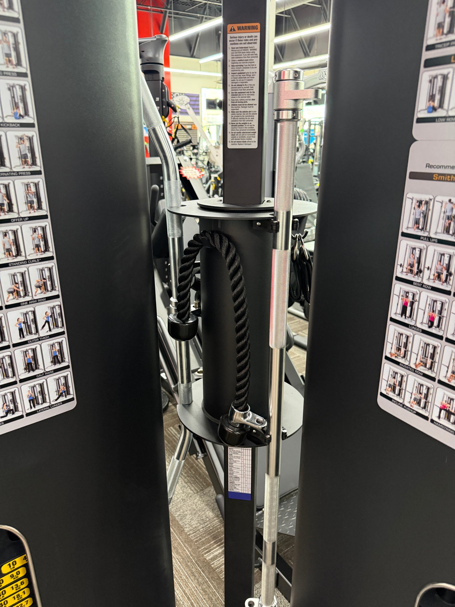 The optional CXT-225 Smith Press attachment includes a self-aligning heavy duty press system, 15 bar catches, and angled weight prongs to maximize corner usage.
