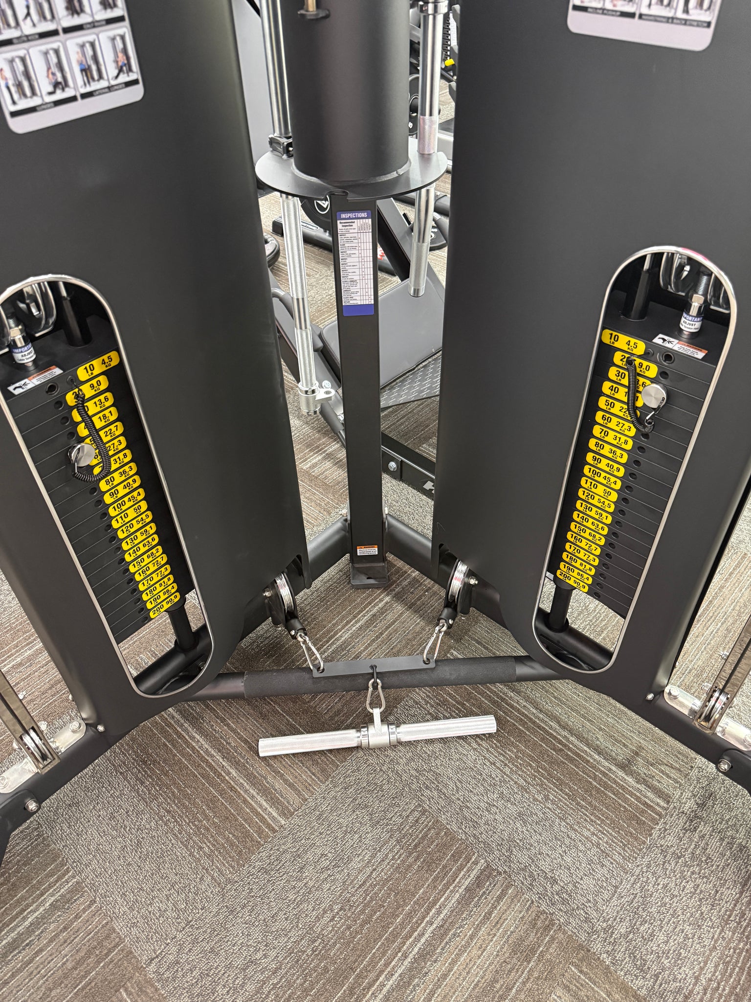 - Fixed Lat and Low Row stations for single or dual arm movements