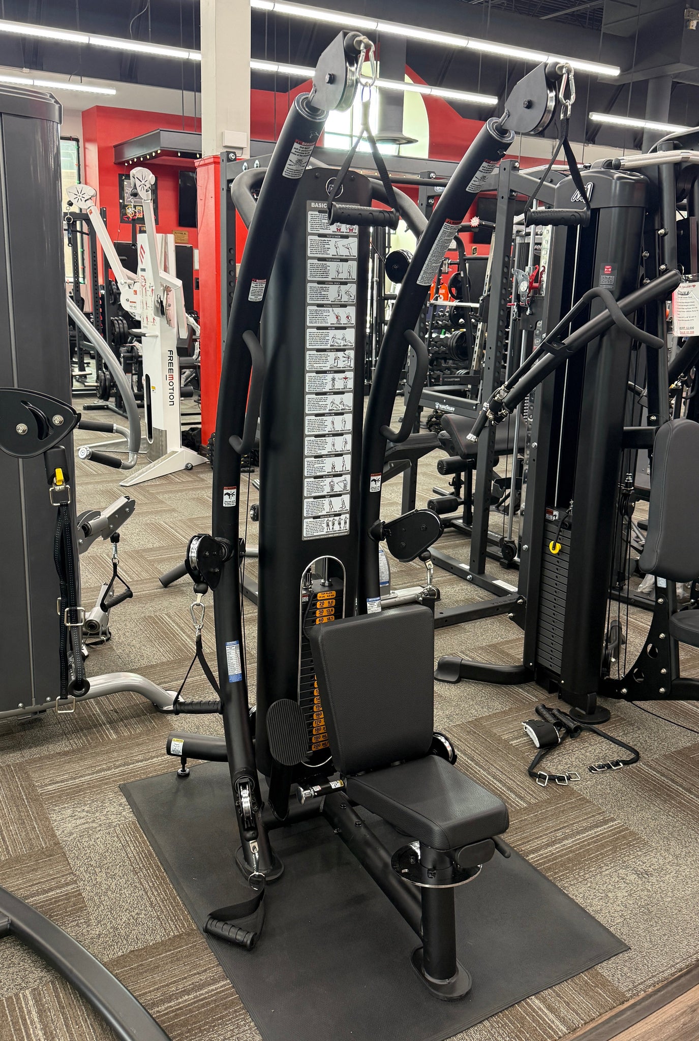 - 6 pulleys at three cable heights: low, mid, and high